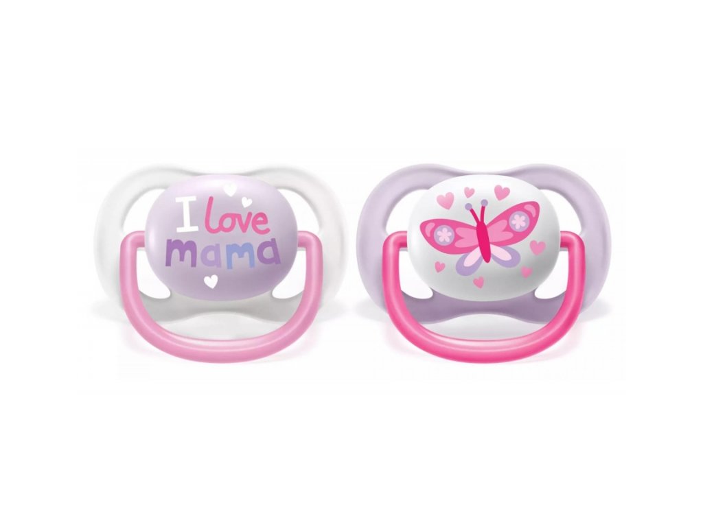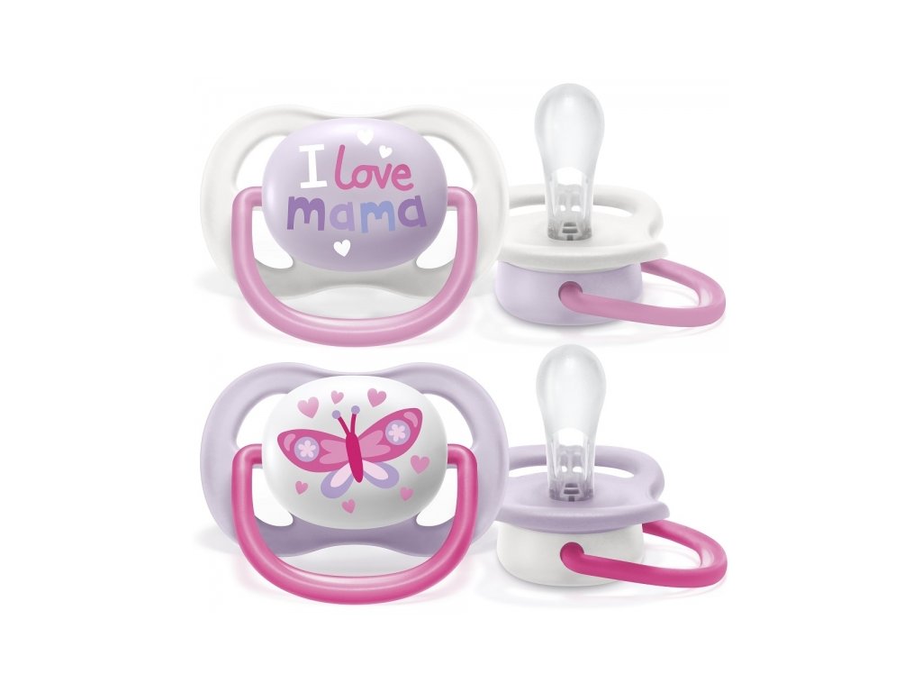 AVENT Dudlík Ultra Air Happy I Love mama, 0-6m - Motýlek, lila