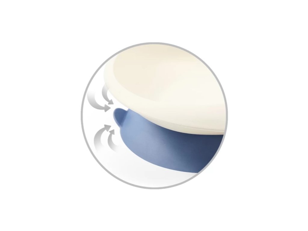 Miska s přísavkou a lžičkou.Dobře poslouží i při učení se samostatně jíst. Přísavka zabraňuje klouzání nádobí po stole a zabraňuje vysypání obsahu. Vyrobeno z jemného materiálu, povzbuzuje dítě k hledání oblíbené svačiny, podporuje rozvoj hmatu.
