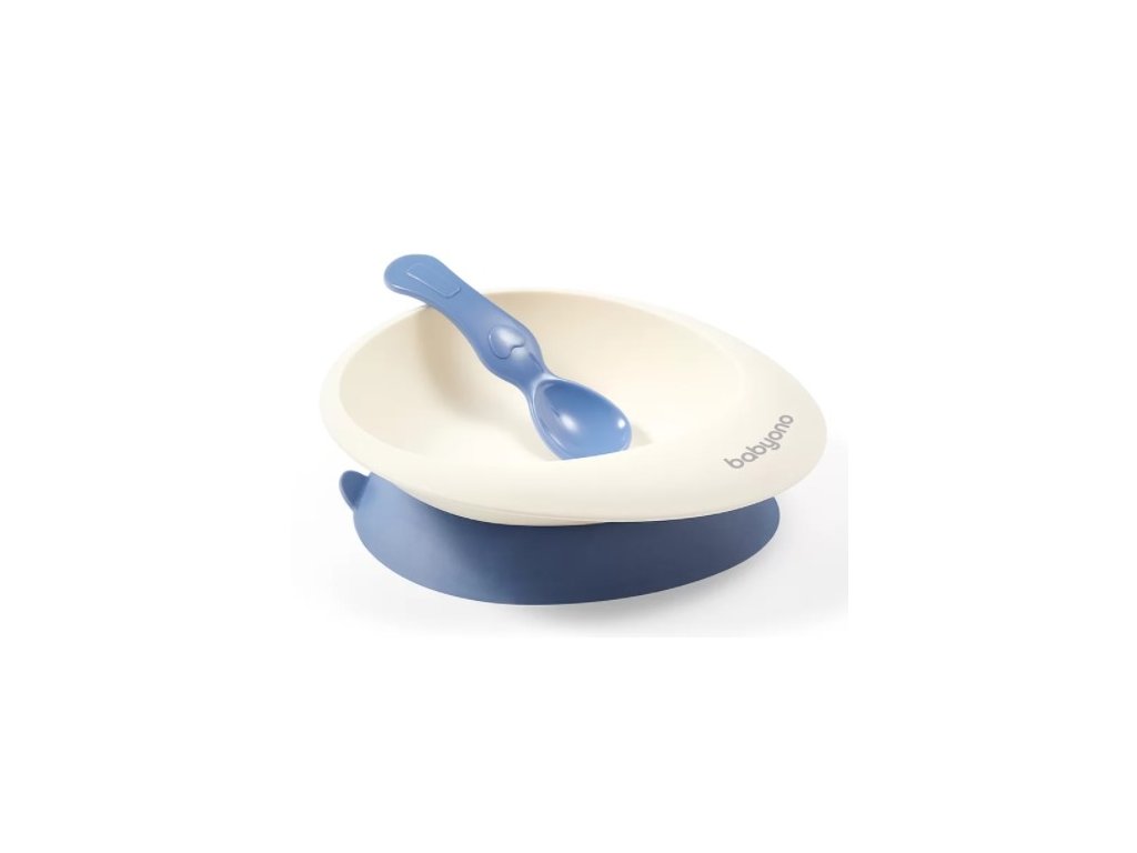 BabyOno Miska s přísavkou a lžičkou - bílá, modrá