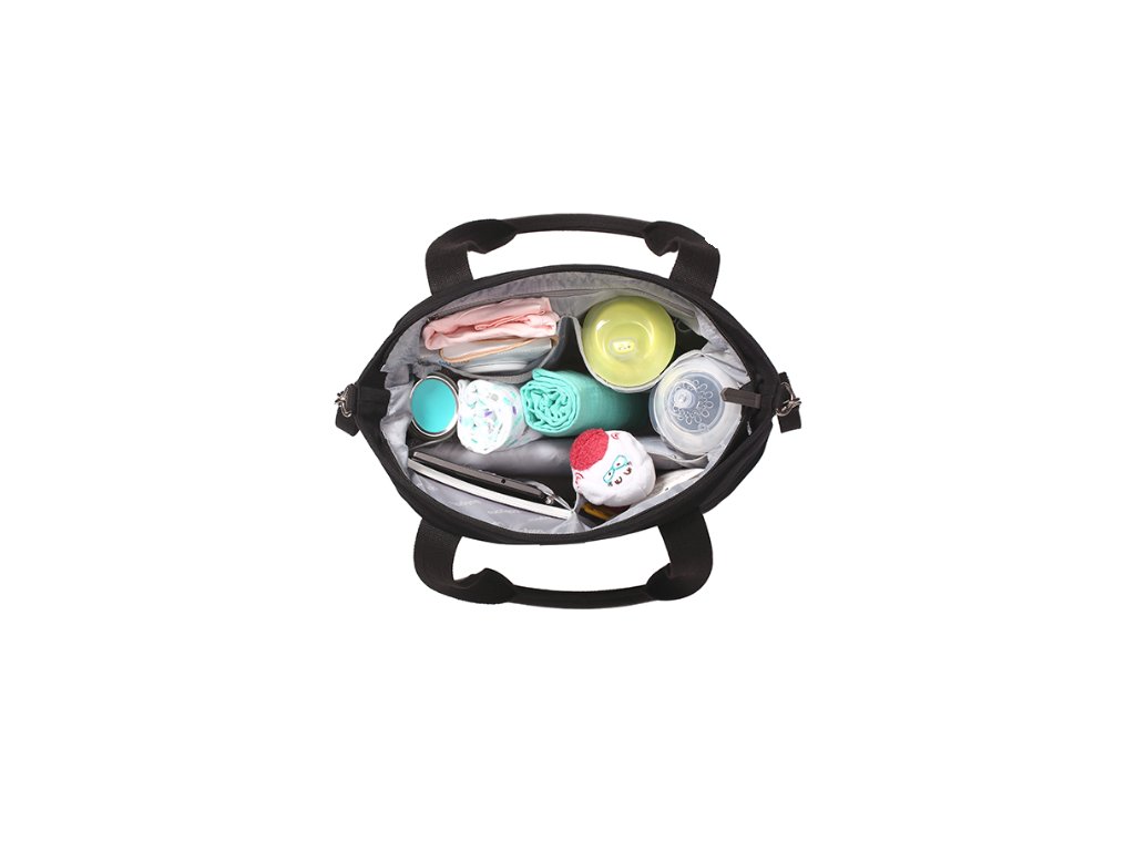 Kabelka má 11 kapes - termokapsa, kapsa na mobilní telefon, speciální prostor pro tablet, na doklady, pleny, dudlík,..