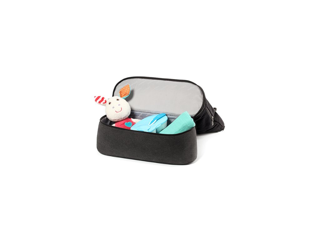 Je vybavena postranními popruhy, které umožňují připevnění ke kočárku.