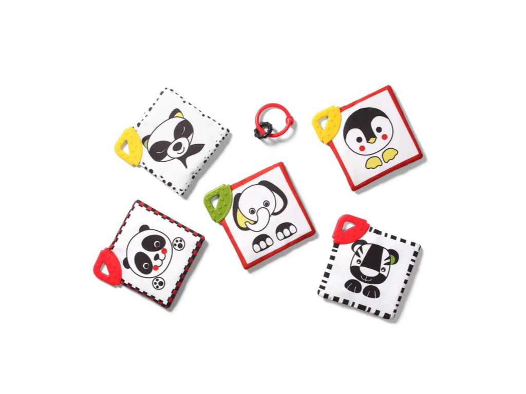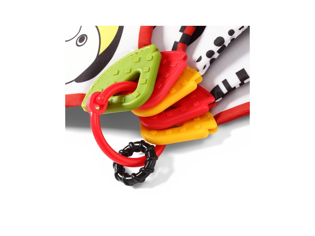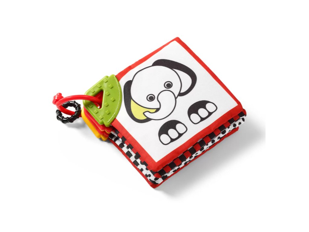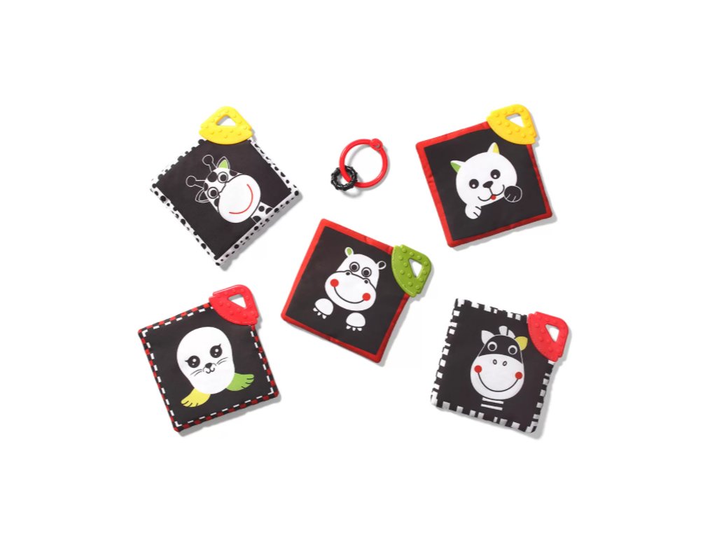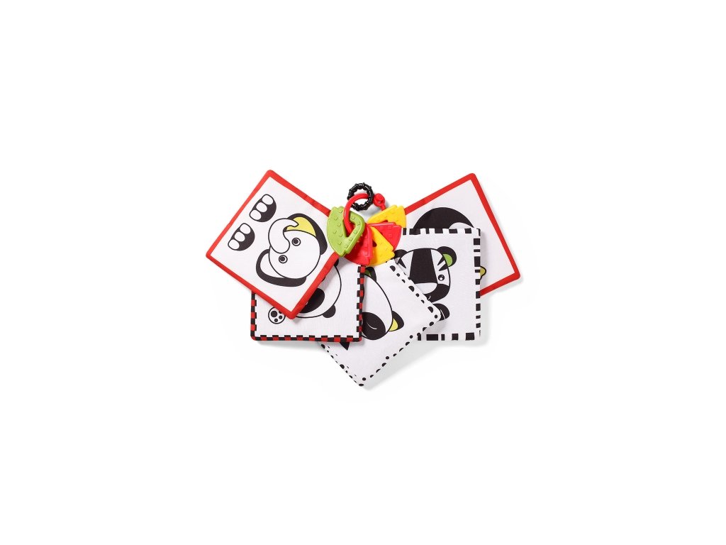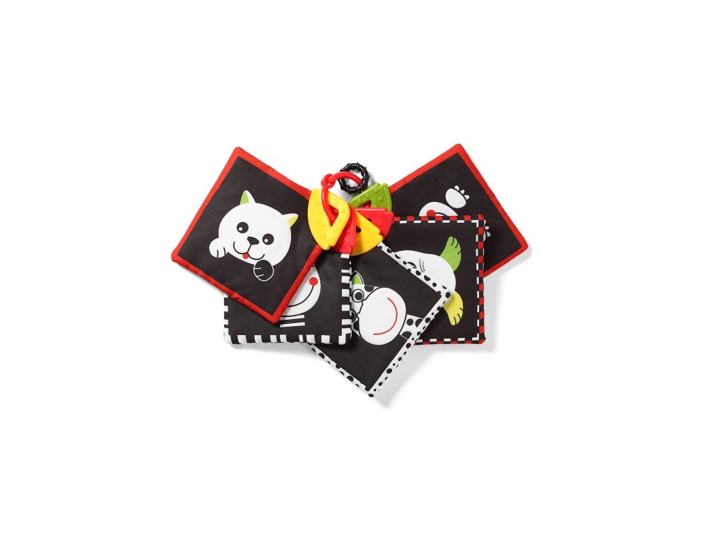Edukativní knížka umožňuje získávat nové dovednosti, od nácviku úchopu, přes stimulaci práce dásní pomocí kousátek s výstupky na rozích. Knížku lze rozebrat na jednotlivé karty, které jsou oboustranné.Stimuluje zrak díky červené a černé barvě, kterou dítě vidí jako první.