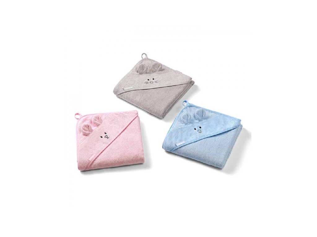 Bambusová osuška pro miminko s kapucí Myška, 100x100cm - modrá