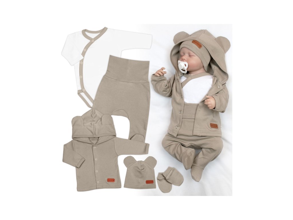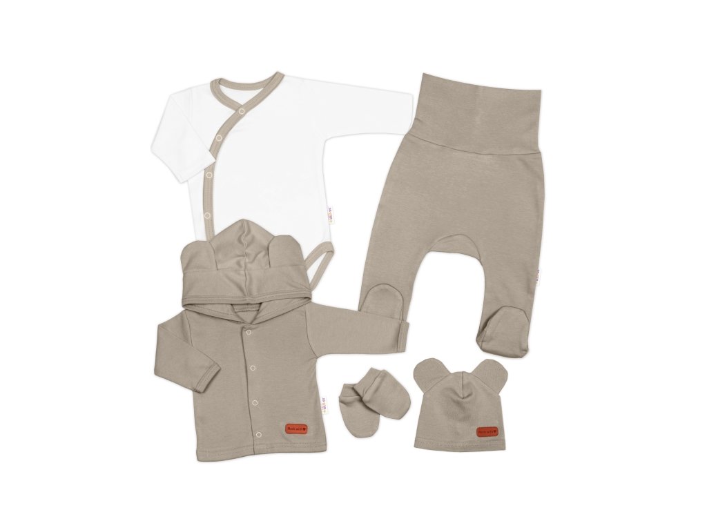 Bavlněná souprava pro miminko do porodnice 5D, Made with love, tm. béžová