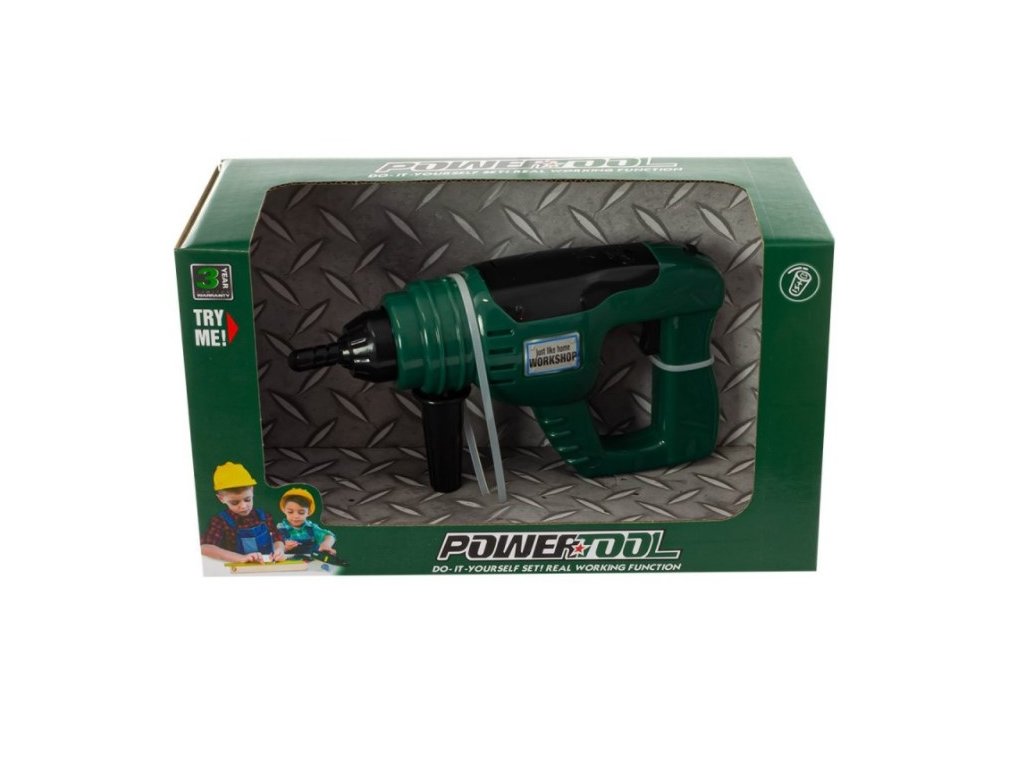 Hračka pro malé kutily. Dokonale reprodukované se zachováním detailů a připomínající skutečný nástroj. Hračka je vybavena bateriemi a po zapnutí simuluje práci jako skutečný nástroj.Typ: vrtačka