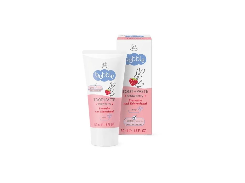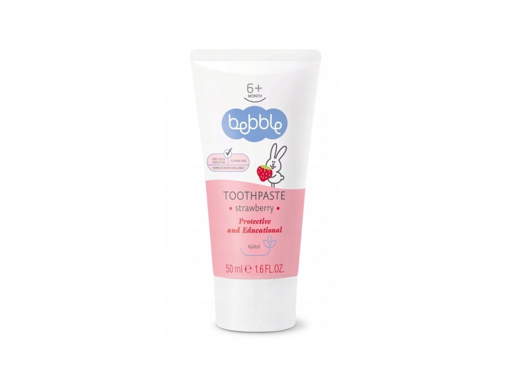 Dětská zubní pasta jahoda Bebble, 50 ml.První malý zoubek děťátka by měl znamenat začátek správné rutiny ústní hygieny. Během prvních měsíců prořezávání zoubků je vhodné čistit dásně a rostoucí zuby pomocí gelu a jemné gázy. Když se vaše dítě stabilně postaví na nohy, obvykle mezi 8. a 12. měsícem, je čas ukázat mu, jak si čistit zuby zubním kartáčkem.