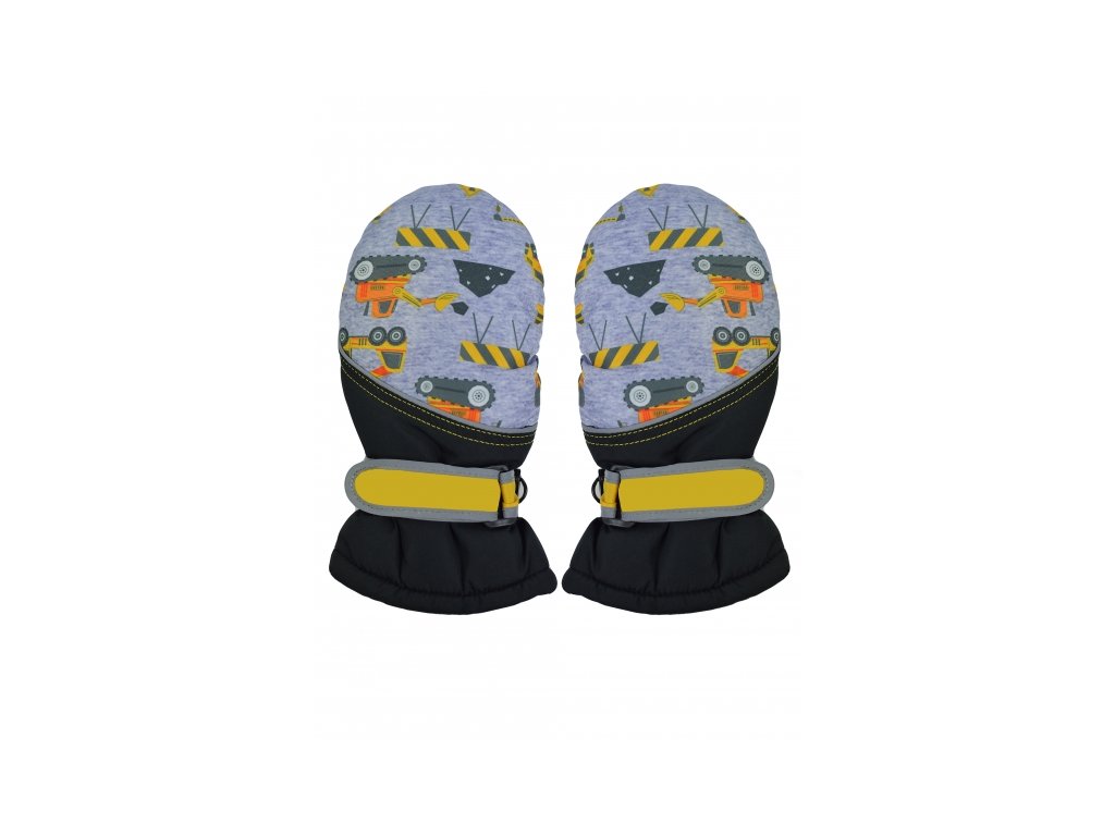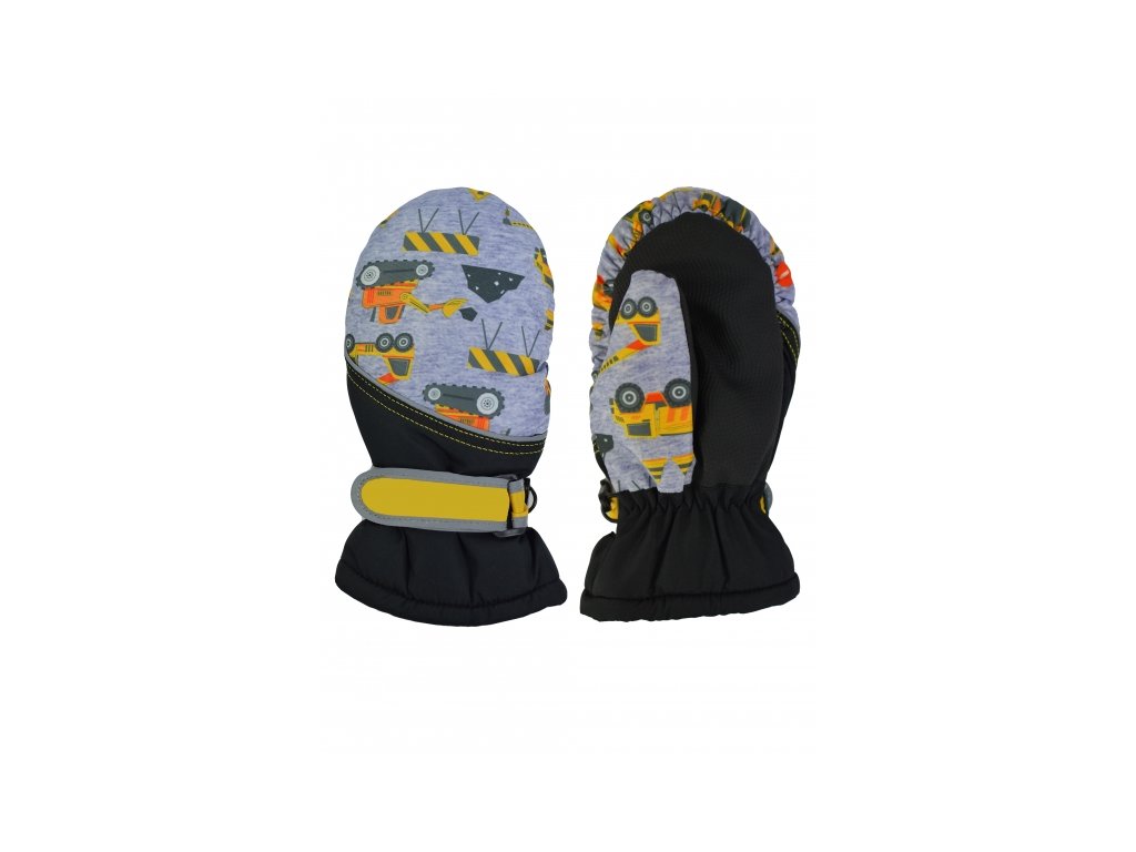 Dětské zimní, nepromokavé palčáky, Stroje, světle šedé, vel. 104/110, 14 cm