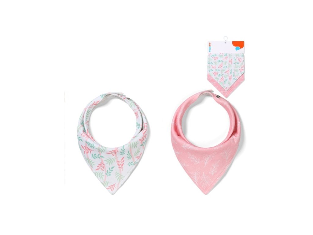 Dětský bryndáček/šátek 2D sada BabyOno Listy, růžová/bílá