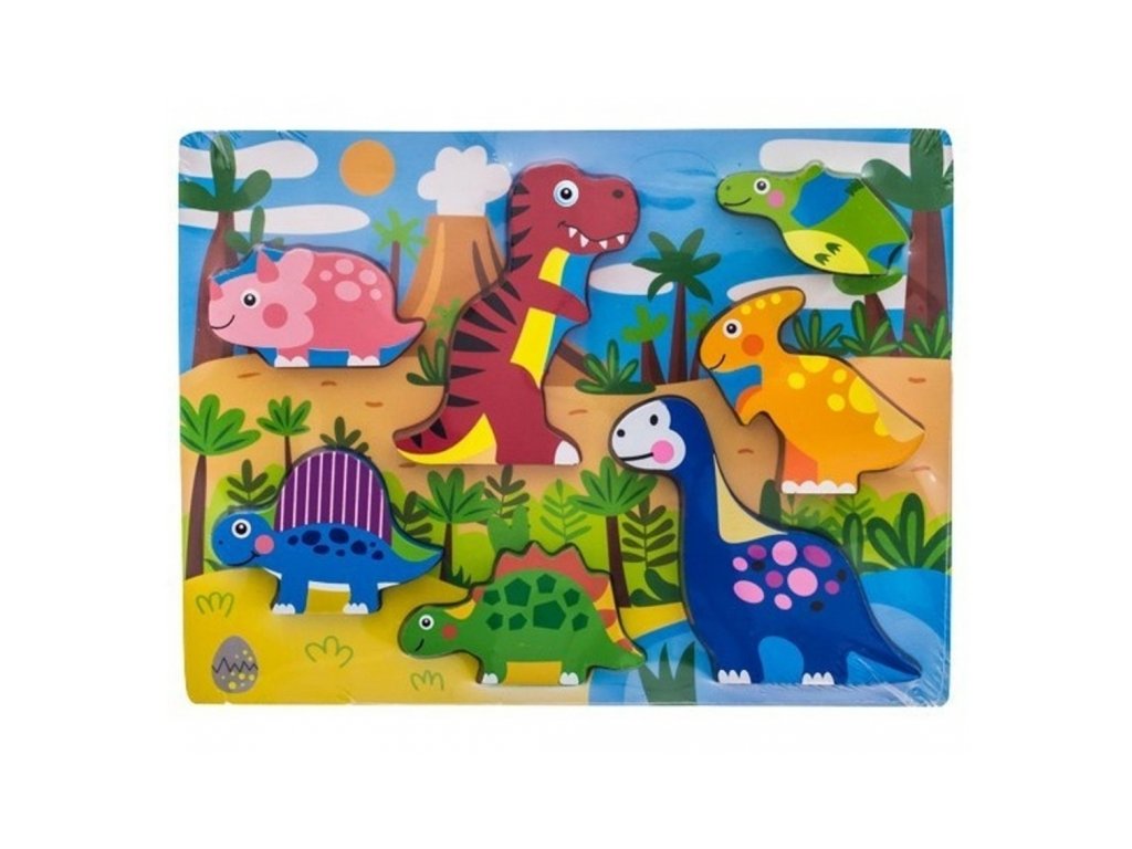 Dřevěné zábavné puzzle vkládací, 35x22,5cm - Dinosauři