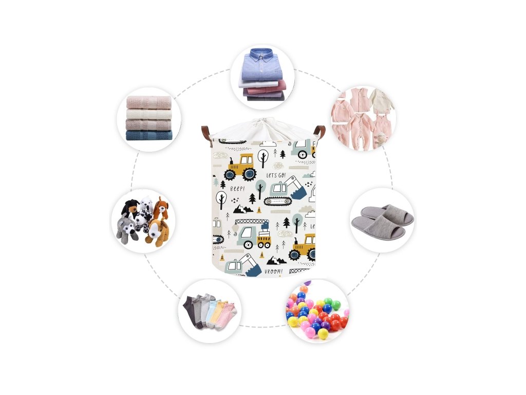 Bavlněný koš na hračky na doma i na cesty pro všechny hračky a jiné poklady.Jejich válcový tvar ušetří spoustu místa a velký objem vám umožní naplnit spoustu hraček. Funkce skládání vám umožní rychle složit košík, když již není potřeba, a uložit jej, dokud jej nebudete potřebovat znovu použít.