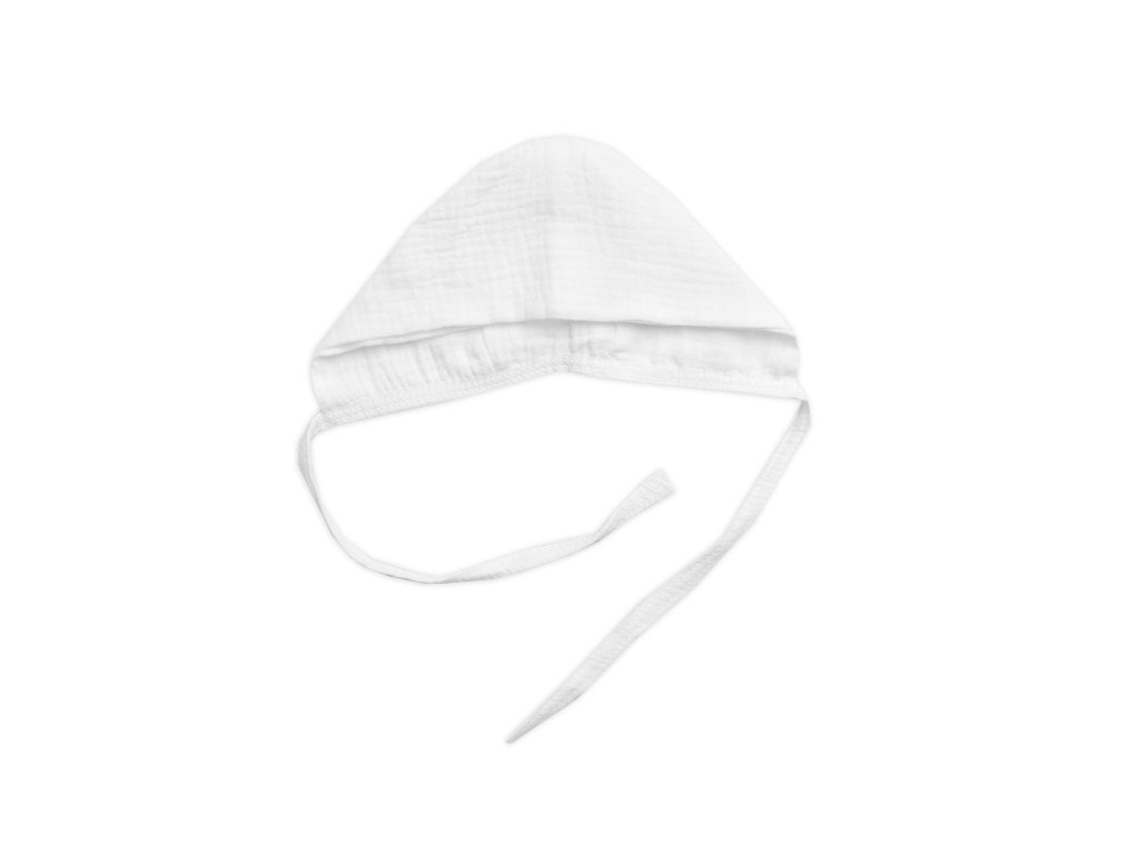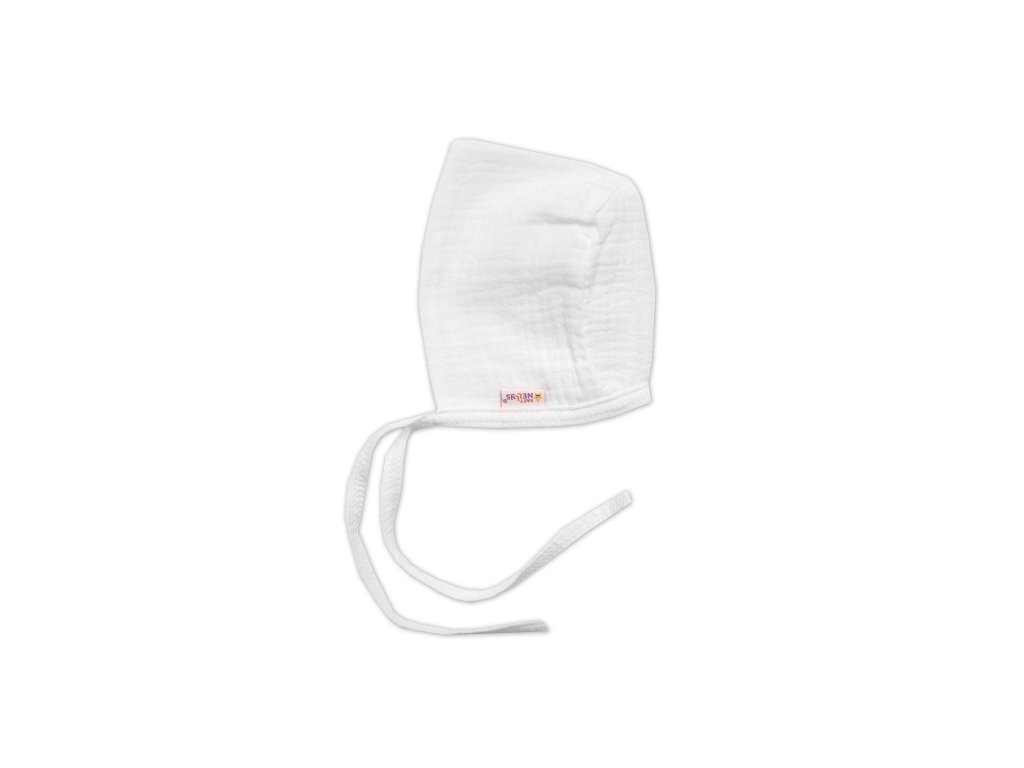 Mušelínová čepička na zavazování bonetka, Hand Made, bílá