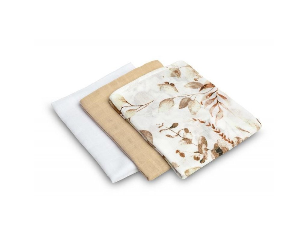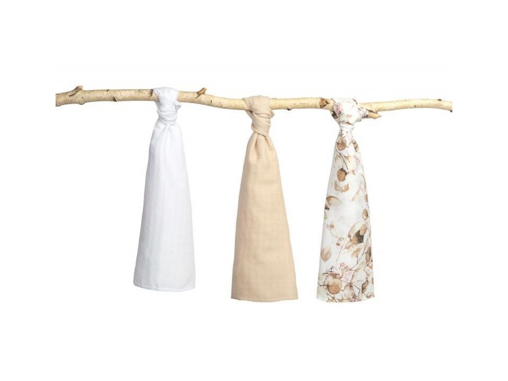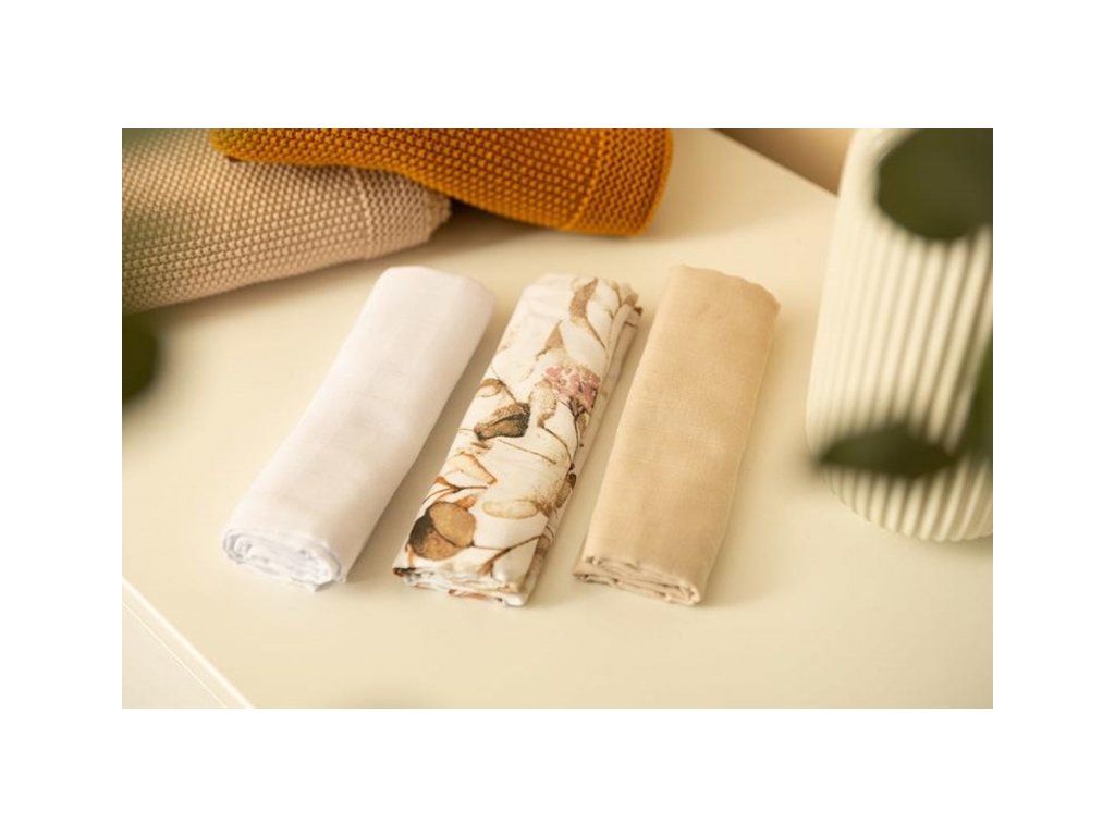 Mušelínové měkké plenky LUX, 3ks, Květy, bílá/béžová/se vzorem