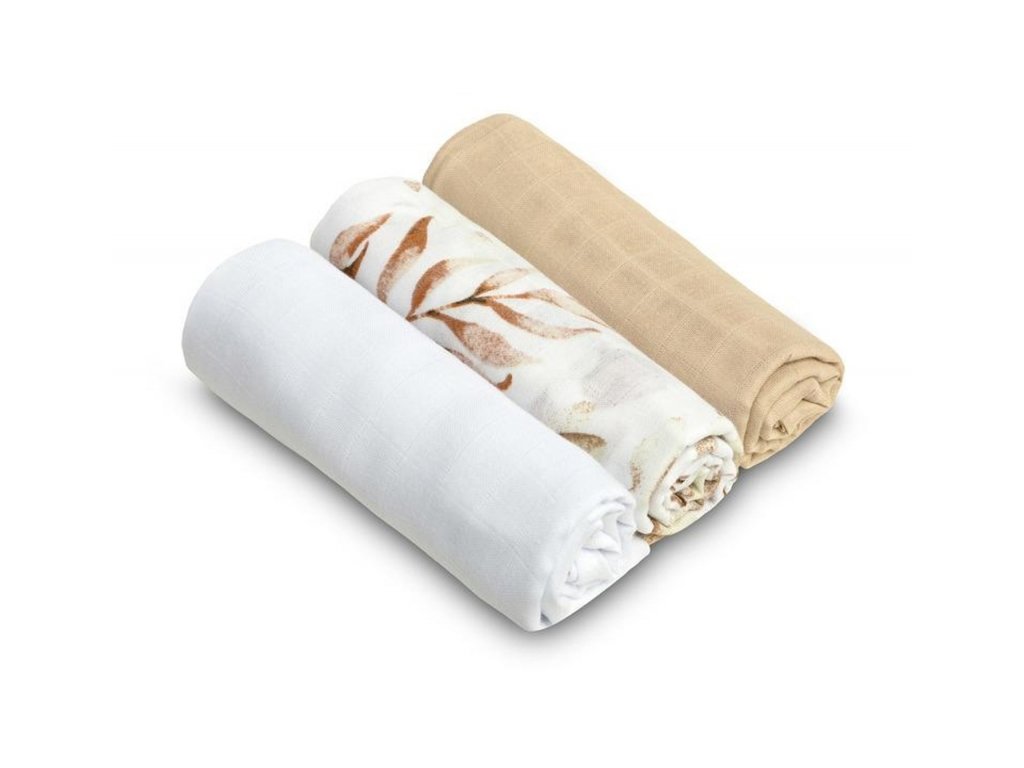 Kvalitní mušelínové plenky 3 ks - 70x80cm.Mušelínové plenky jsou nezbytné v prvních měsících života dítěte. Díky jemné bavlně nedráždí dětskou pokožku a nezpůsobují alergie. Jemná tkanina umožňuje dětské pokožce dýchat a je proto perfektní i v horkých dnech. Každá sada obsahuje módní vzory v tlumených barvách, které dohromady tvoří jedinečnou sadu.