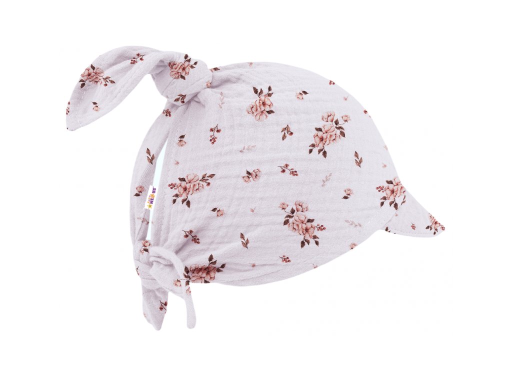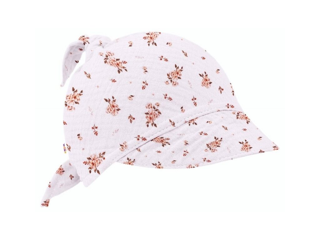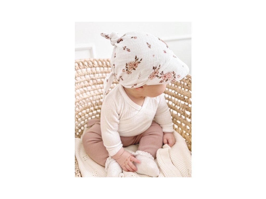 Mušelínový šátek s kšiltem, Flowers - bílý