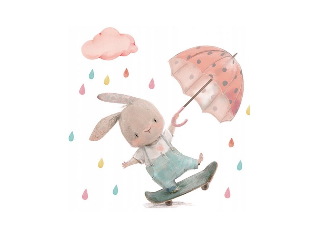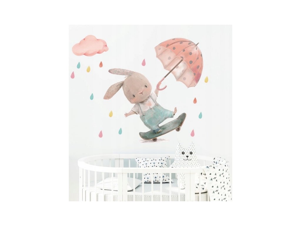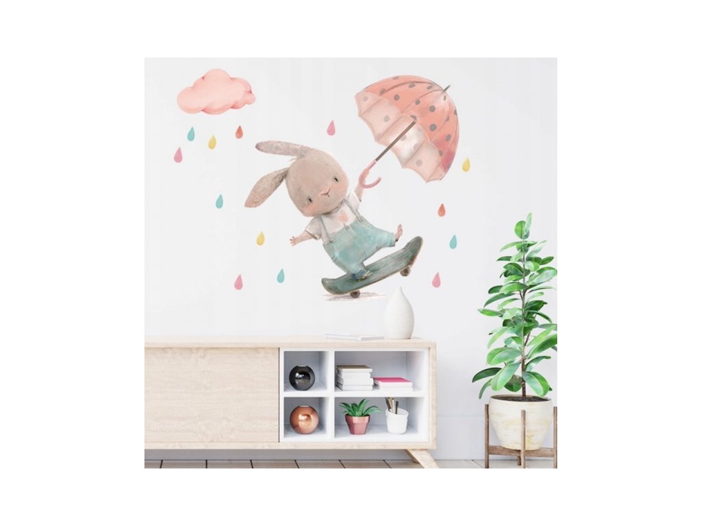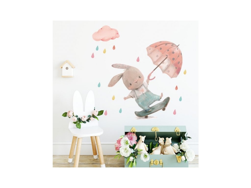 Nálepky, dekorace na zeď Tulimi - Králíček s deštníkem