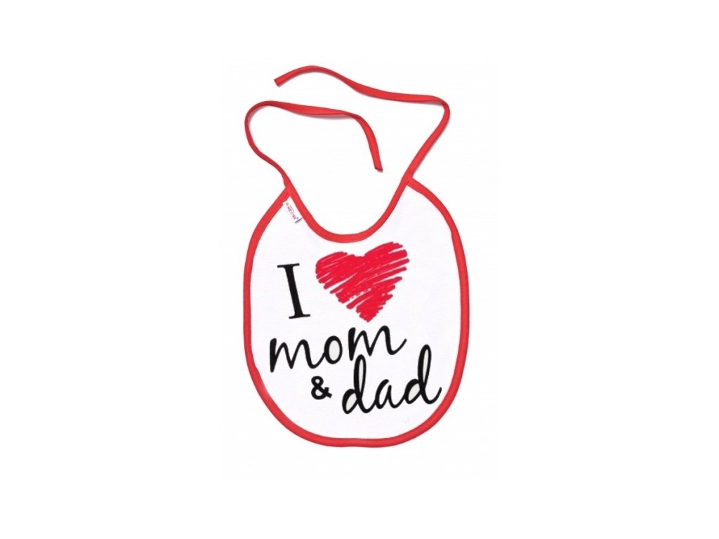 Nepromokavý bryndáček, 24 x 27 cm - I love mom & dad, Baby Nellys - červený