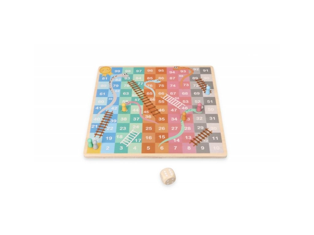 Druhou hrou je tradiční hra z Velké Británie „Snakes and Ladders". Hru může hrát maximálně 6 lidí. Umístěte figurky na pole s číslem 1 a poté se posouvejte na cílovou čáru v postupně očíslovaných polích. podle počtu bodů udávaných kostkou, ale pozor v této hře můžete snadno vylézt nahoru, ale také spadnout o mnoho polí dolů, a to vše díky žebříkům - ty nás vynesou nahoru, neboli hadům, po kterých bohužel kloužeme dolů.