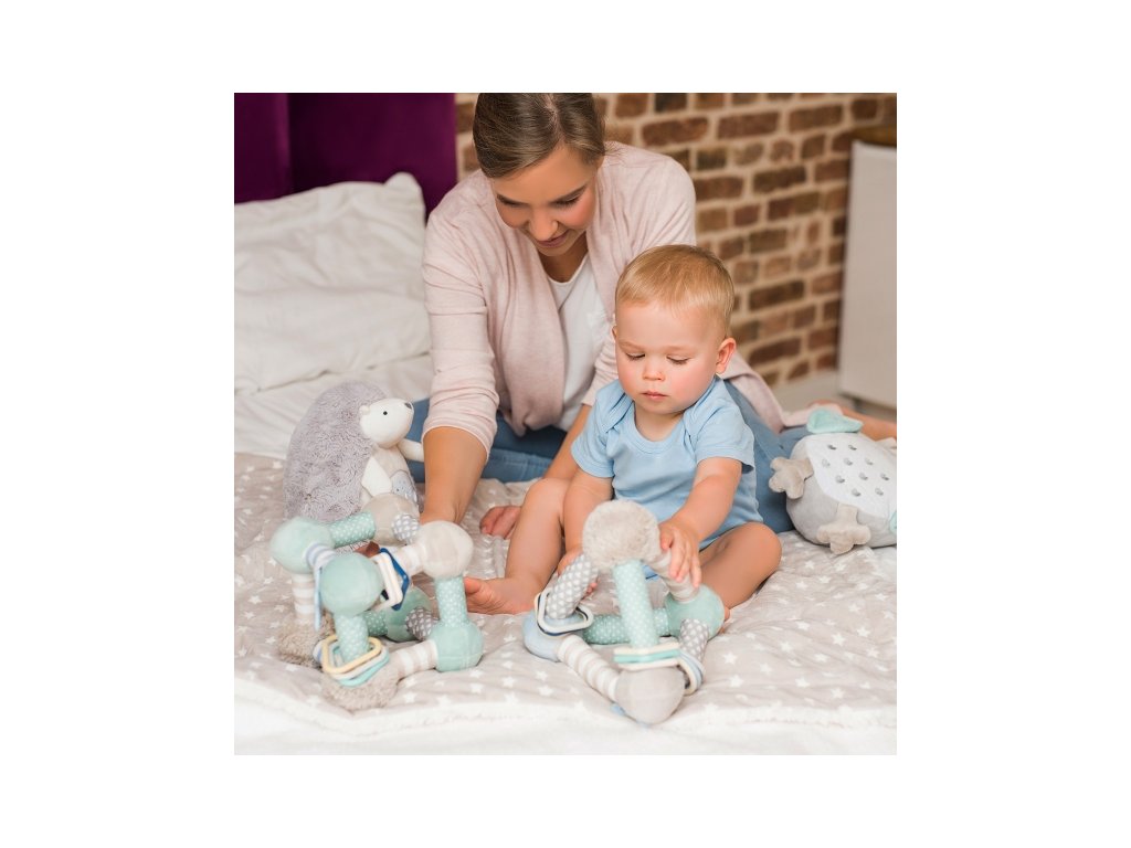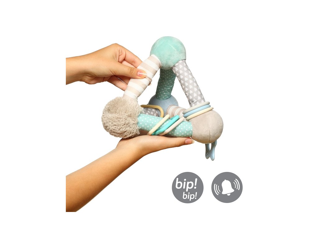 BabyOno Plyšová edukační závěsná hračka.Zvukové nebo pobyblivé elementy přitahují pozornost dítěte a seznamují ho se světem barev a zvuků.
