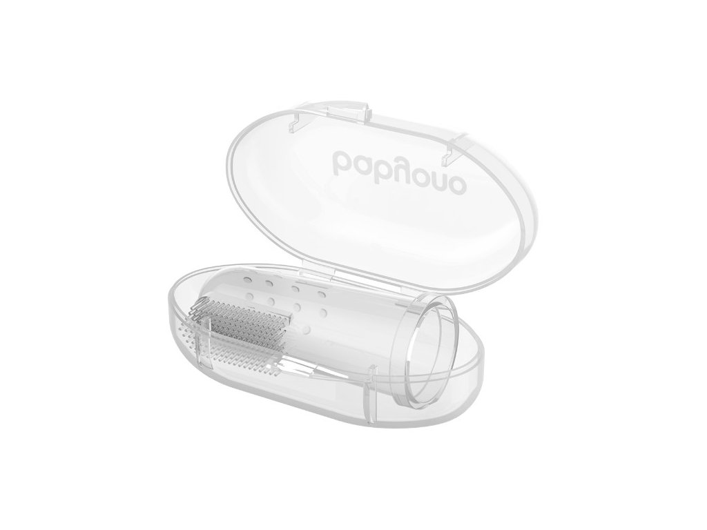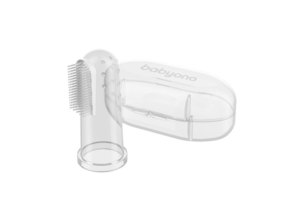 Silikonový kartáček je určen k mytí prvních zoubků dítěte a masáži dásní. Doporučujeme k použití i u dětí, které ještě zoubky nemají. Konstrukce kartáčku umožňuje vyčištění a masáž těžce dostupných míst. Speciální výstupky důkladně masírují dětské dásně. Učí dítě správné zubní hygieně. Umožňuje rodičům bezpečné čištění, bez obav z poškození citlivých dětských dásní, ke kterému může dojít při použití klasických zubních kartáčků a tím dítě odradí od čištění zoubků. Kartáček navlékněte na ukazováček (viz obrázek) a jemně čistěte a masírujte dětské dásně.Udržujte v čistotě. Před každým použitím sterilizujte ve vařící vodě po dobu 5 minut. Po použití kartáček důkladně umyjte a opláchněte.