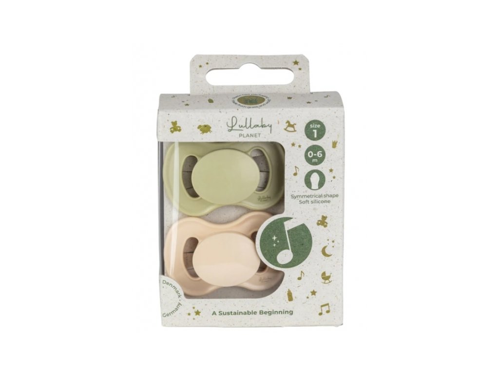 Šidítko, dudlík, silikon, symetrický, 2ks, Lullaby Planet, 0-6m, oliva/meruňka