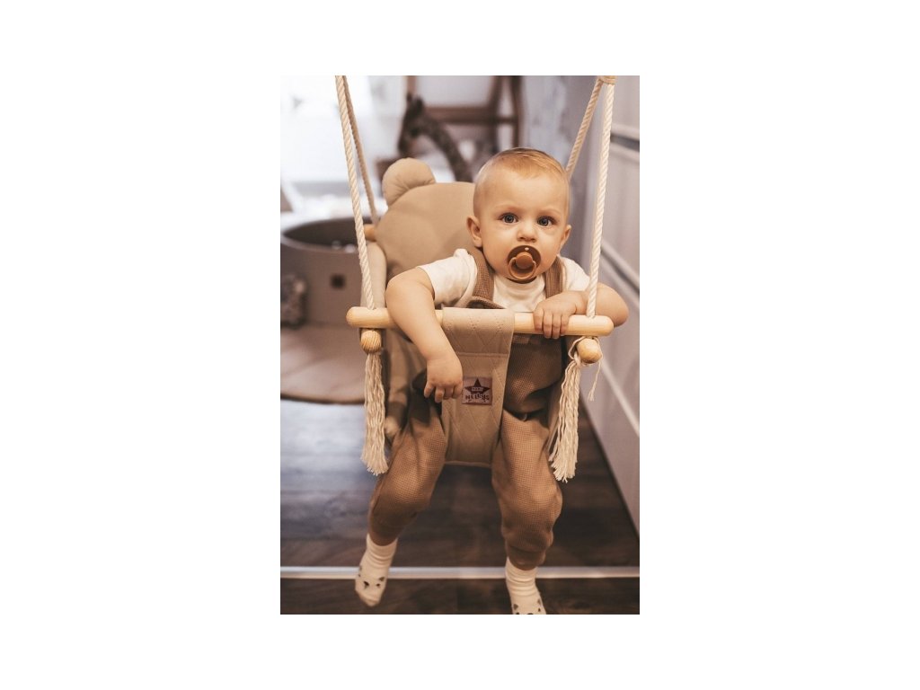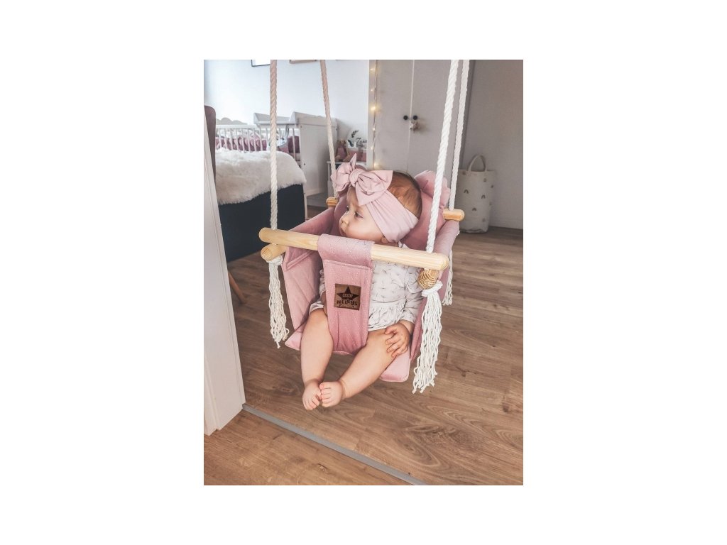 Stylová houpačka VELVET je nejlepším přítelem každého batolete. Při houpání se děti mohou uvolnit a zklidnit a zároveň se zabavit. Je vědecky dokázáno, že houpání má pozitivní vliv na vývoj dětí, protože zlepšuje a formuje jejich rovnováhu. Má také pozitivní vliv na nervový systém. Jde tedy o formu rehabilitace a zábavy v jednom.Rám houpačky je vyroben z kvalitního bukového dřeva. Všechny dřevěné prvky mají bezpečné zaoblené hrany.
