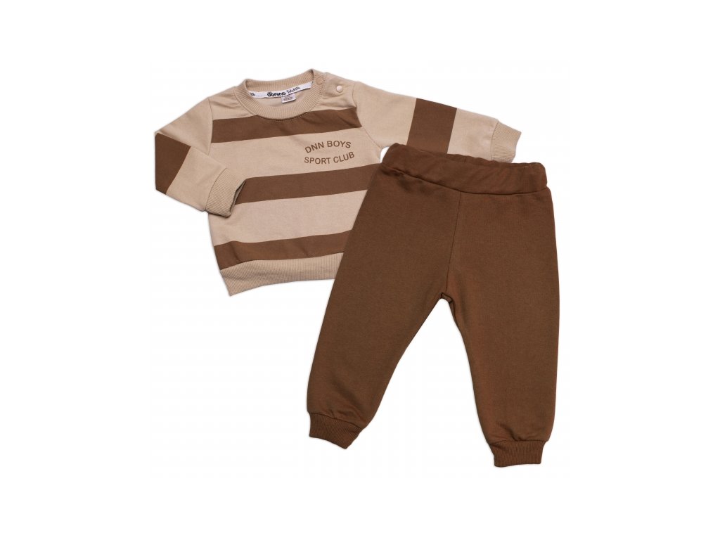 Tepláková souprava 2D, bavlna, proužek - hnědá