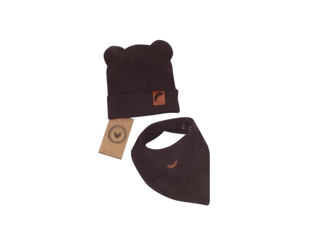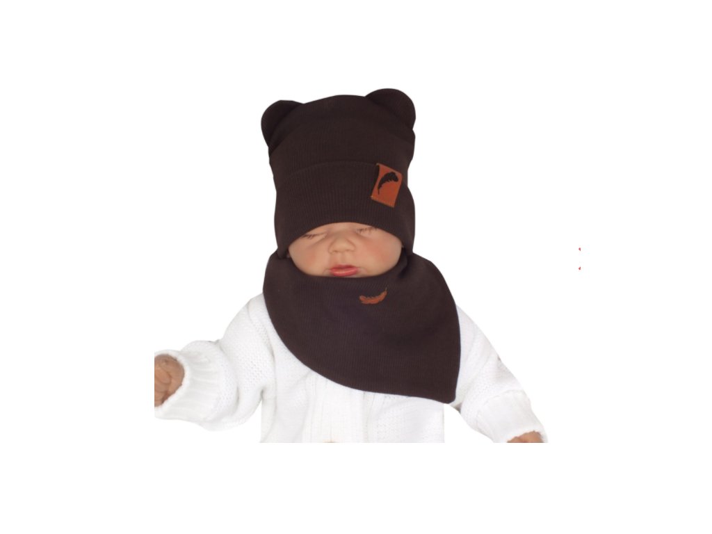 Z&Z Dvouvrstvá žebrovaná čepička s oušky + šátek, čokoládová