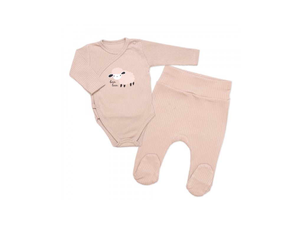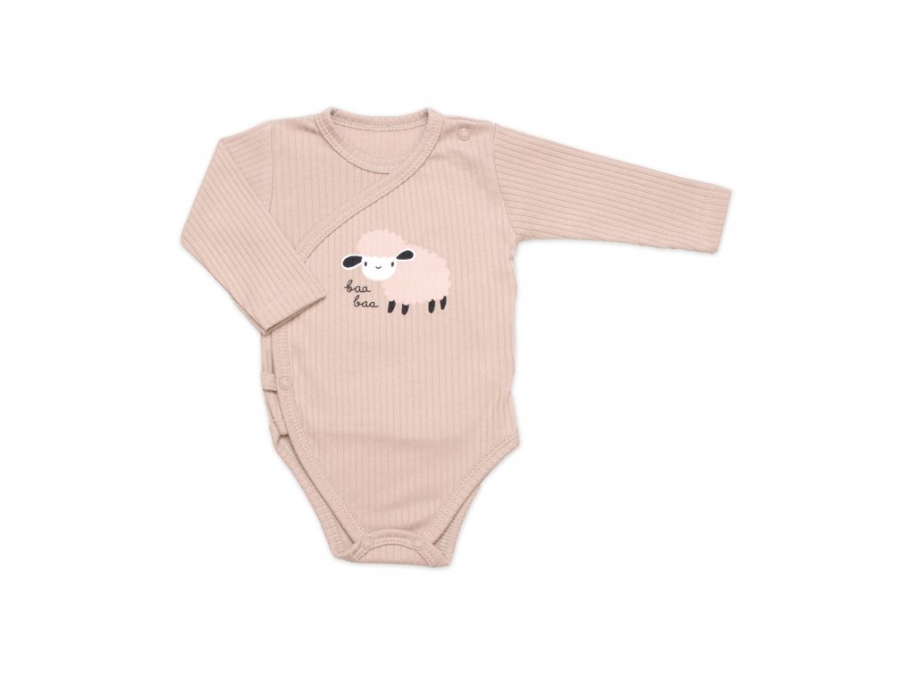Zavinovací, žebrované kojenecké body + polodupačky Ovečka 2D, béžová